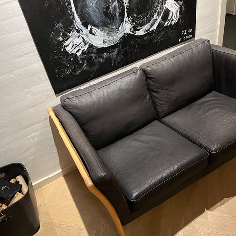 Sofa mål: L 118 cm, d 68 cm, højde til ryg 87 cm, siddehøjde 45 cm.