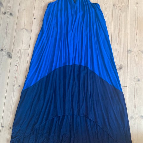 Sød marineblå kjole med fine detaljer og slids i ryggen med lille guldfarvede knap.