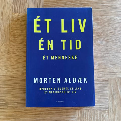 Morten Albæk "Ét liv én tid ét menneske" . Dansk faglitterær udgivelse, der behandler temaer om mening, liv og tid i et moderne samfund. Velegnet til læsere med interesse for filosofi, eksistens og samfundsdebat. Trykt i paperback med dansk tekst.
