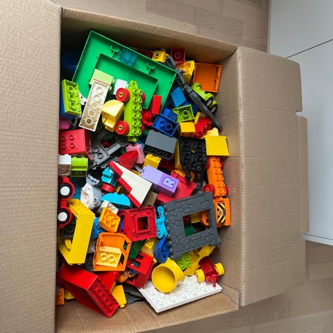 En stor 10 KG LEGO DUPLO POSE med plader, gravko, flyvemaskine, bus m.m.