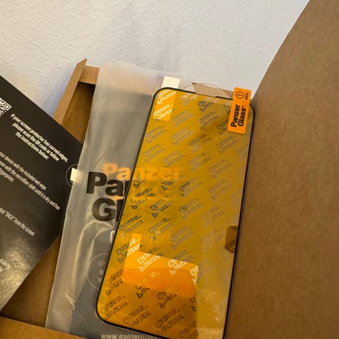 Original iPhone 13 Mini skærm med privacy panserglas monteret.