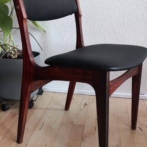 Stole er wobbly, men kunne godt limes/repareres. Ellers er de i god stand. Pris for 2.