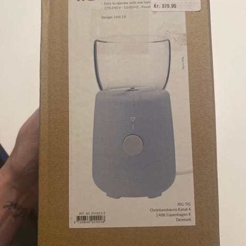 Kaffekværn modtaget i gave i 2022. Aldrig brugt, og derfor som ny. Mærket hedder i dag Aiviq og er købt på kaffepro.dk