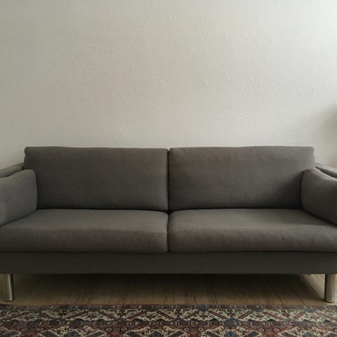 Antracit grå Søren Lund sofa. Let falmet stof på rygpuderne (svært at vise på billeder). Lidt slitage i hjørnerne på siddepuderne (jf billeder).
