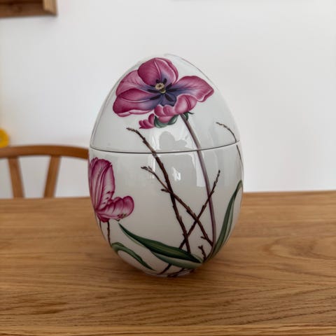 Påskeæg Primula Lilla med bund og låg. Højde 12 cm Jubilæum fra Royal Copenhagen.