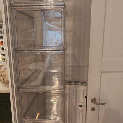 Skobokse. Har været brugt til display af sneakers. 4 stk åbner i enden - 2 åbner ud på langs. Alle med magnetlukning. Perfekt stand. Alle 6 for 380 kr eller enkeltvis for 70 kr. kan afhentes nær Forum Metro. Er ikke kartell men kan ikke fjerne forslag til brand i appen.
