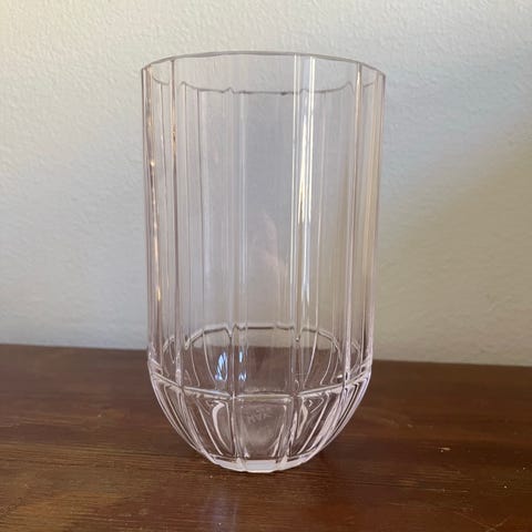 Hay glas i lyserød glas med marmoreret mønster.