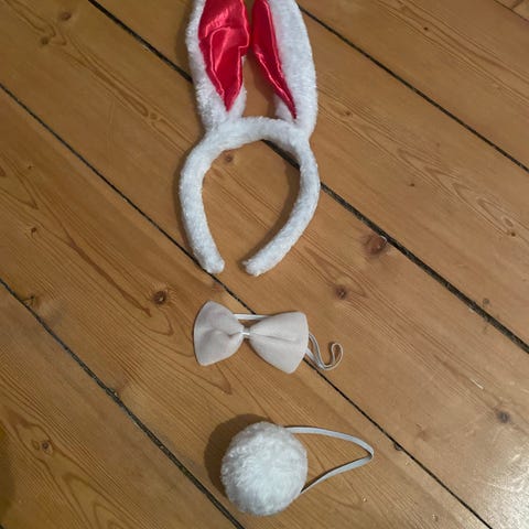 Bløde kaninører i hvid og lyserød på polstret hårbøjle. Ståltråd i ørerne så de kan formes som man ønsker.