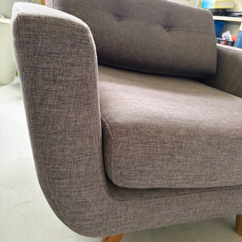 Grå lænestol meget flot , ingen pletter eller misfarvning. Har sorte træ ben .