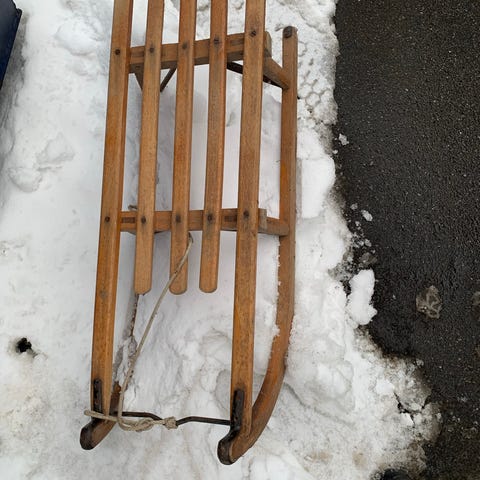 Stiga kælk i rød plast med gult træk-håndtag og snor. Super fine og smarte 🛷