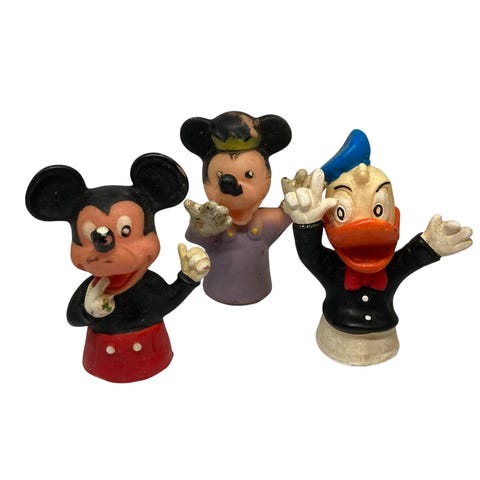 De tre resterende hånddukker er mærket W D P, hvilket betyder Walt Disney Productions.