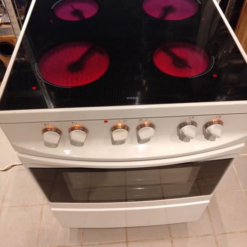 Brugt VOSS klaskeramisk komfur , rengjort og afprøvet . Højde 85 cm. Br. 60 cm. D. 60cm. Rep. af lak på sideplade venstre side ( se foto ) Med ledning.