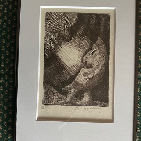 Flot Herman Stilling litografi fra 1973, signeret og nummereret og indrammet i en helt ny ramme med tynd kant af metal.