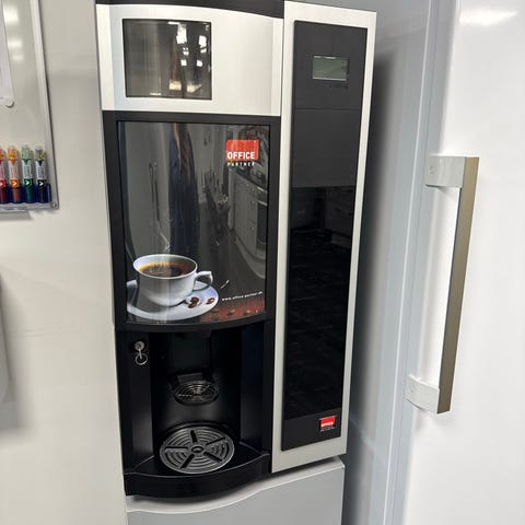 Dette er en Douwe Egberts Cafitesse Omni eller Omni Espresso professionel kaffemaskine.