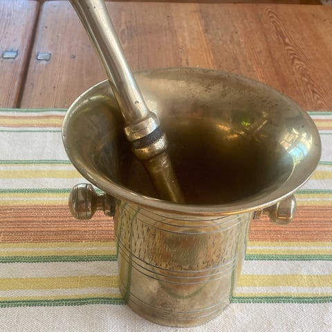 Højde morter 11,5 cm, højde støder 21 cm