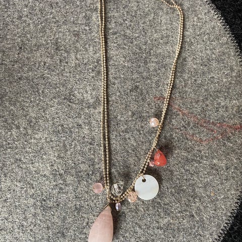 Halskæde i ægte rosenkvarts fra 1990erne. 42 cm lang.