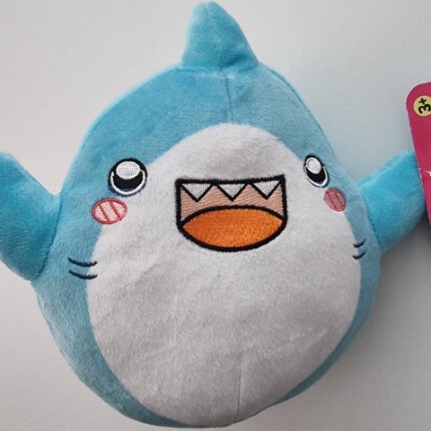 Lankybox shark plush har bare stået til pynt på en hylde.