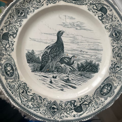 Mason’s Game Birds The Mallard tallerken i patent ironstone. Tallerkenen er hvid med sort dekor af ænder og detaljeret bort langs kanten. Egnet som spisetallerken eller dekoration. Motivet og glasuren er angivet som vaskemaskinesikre og syrebestandige i farverne ifølge stempel på bagsiden.