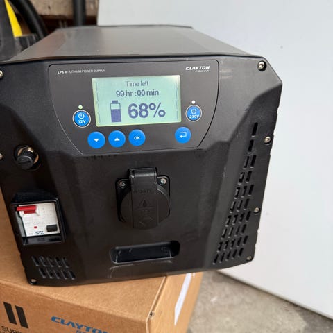 Clayton LPS II2500W - 1kWh 12v - 230v inverter med 1kWh batteri, mulighed for at lade over bilens generator eller lade den hjemme på 230v lysnettet og "tage strømmen med i bilen"