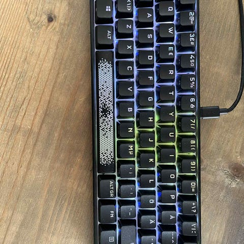 Corsair K65 RGB Mini tastatur i 60 % kompakt layout. Mekanisk gaming-tastatur med RGB-belysning i tasterne. Sort kabinet og sorte taster. Forbindes med aftageligt kabel via USB. Velegnet til stationær og bærbar computer, hvor der ønskes et kompakt mekanisk tastatur med lys i tasterne.