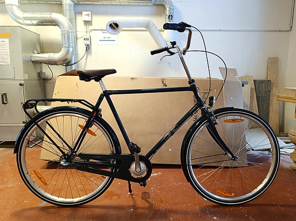 Indvenige gear. Højt og bredt styr. Håndbremse for og fodbremse bag. Køreklar og komplet med kurv, klokke, bagagebærer, støttefod, lygter, alle reflekser og fastmonteret ringlås med 2 nøgler. Yderst behagelig, rank, høj og flot kørestilling. Passer til høj som lav, og jeg indstiller styr og sadel så cyklen passer lige til dig. Obs, bagagebærer har lidt malingafskrab (zoom evt. på billeder), men alt er grundigt lakbehandlet. Str. 53 cm. 3 gear. Stelnr.: BYP1021591. (Ved henvendelse angående cyklen, for hurtigere respons, sms eller ring venligst på 22 13 21 30, eller benyt messenger ved at trykke på "gå til varen" knappen).