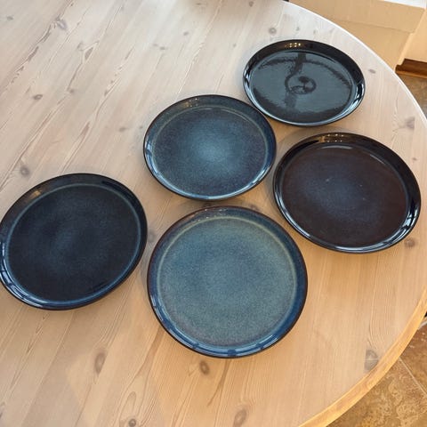 8 stk. glastallerkner i lilla/lyserød farve. Grundet materiale er der brugstegn og er halvdelen varierende, så den ene halvdel er tykke og den anden er mere tynde. Tåler opvask.