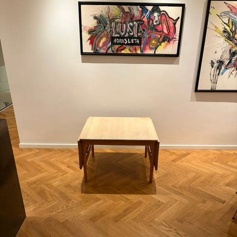 er rigtig flot sofabord med 2 klapper sælges afhentet i 2400 NV. Se billeder for stand, hjul er lidt deforme i gummi pga. alder, nye kan sikker findes.