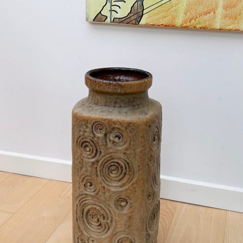 Sjældent set W.Germany gulvvase, formentlig Scheurich. H 38 cm. Fin intakt stand, kun lidt skrab et par steder i de brune tern.