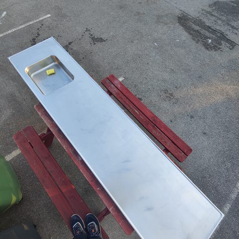 Franke køkkenvask i rustfrit stål, indv. 48 x 34 cm. Vasken har afløb med kurvesi og hul til armatur. Velegnet til montering i køkkenbordplade. Mål fremgår af billederne med tommestok. afløbsudløb med tilsluttet afløbsslange.