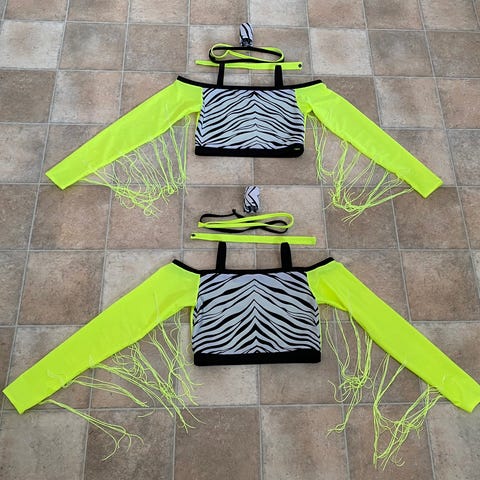 Til hver top følger: hårtårn, 2 armbånd og halsbånd.