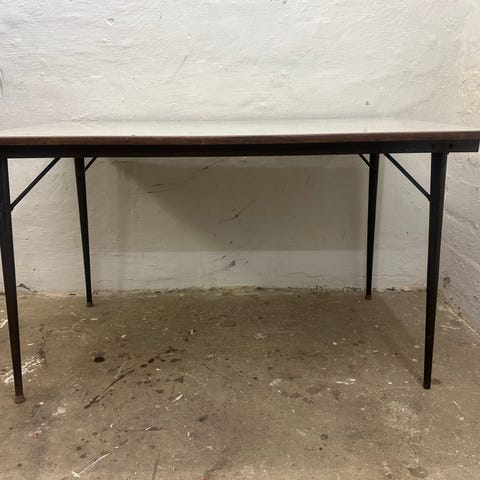 Bordet har en del brugsspor og trænger derfor nok til en omgang maling. Men er ellers brugbart.