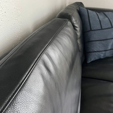 Stand: Læderet er passet godt på, er blødt og uden huller. Hynderne har stadig rigtig god komfort og fasthed.