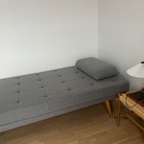 Flot daybed i massivt egetræ og flet fra Jysk. Brugt sparsomt og er i rigtig fin stand i flettet.