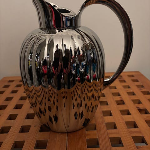 Velegnet til servering af vand, juice, mælk eller andre drikke ved borddækning. Kanden er en del af Bernadotte-kollektionen fra Georg Jensen.