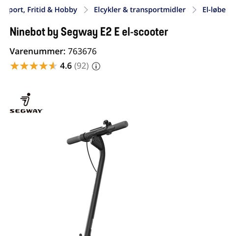 Segway Ninebot elektrisk løbehjul i sort. Modellen jeg sælger den da jeg ikke bruger den alt virker på den det er bagved lys der ikke virker kun der to oplader med til den