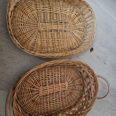 Skål i flettet materiale i gul farve. Rund form med lave sider, egnet til brug i køkken eller på bordet til opbevaring af mindre ting som nøgler, smådele eller som dekorativ skål. Materialet fremstår som kraftigt og struktureret.
