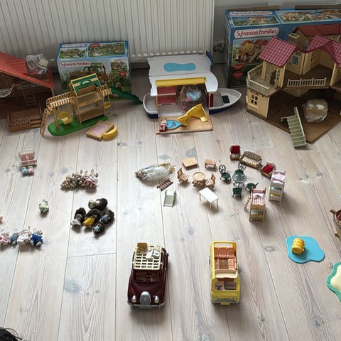 Sylvanian Families Hospital m Doktor Bamse, Plejer Kanin, Lille muldvarpe patient og Bæver pige m foden i gips, masser af små dele (se billeder)