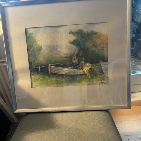 Foto, Ukendt, motiv: Fiskebåd, b: 53 h: 43, Fiskeredskaber fra dengang der var fisk i havet, kan sendes