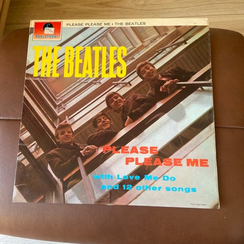 The Beatles Please Please Me lp. Studioalbum udgivet på Parlophone/EMI som 33 1/3 rpm langspilsplade. Albummet indeholder numre som blandt andet "I Saw Her Standing There", "Misery", "Anna (Go To Him)", "Chains", "Boys", "Ask Me Why", "Please Please Me", "Love Me Do", "P.S. I Love You", "Baby It’s You", "Do You Want To Know A Secret", "A Taste Of Honey", "There’s A Place" og "Twist And Shout". Pladen er presset i Danmark, stereo-udgave, og leveres med originalt cover med for- og bagsideprint af titler og krediteringer. meget god stand ingen ridser