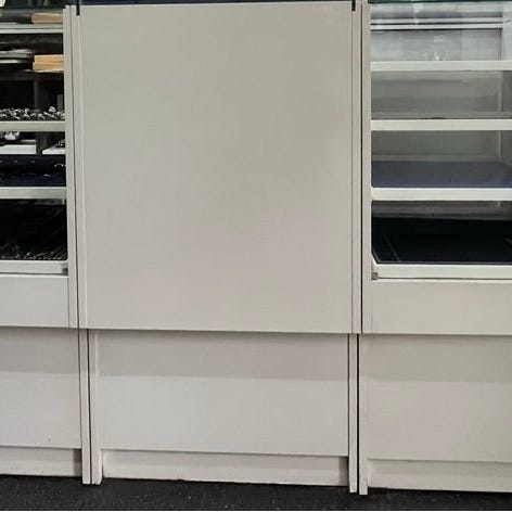 Desk I træ malet i hvidt med struktur. 163 cm bred, 52 cm dyb , 97 cm høj.