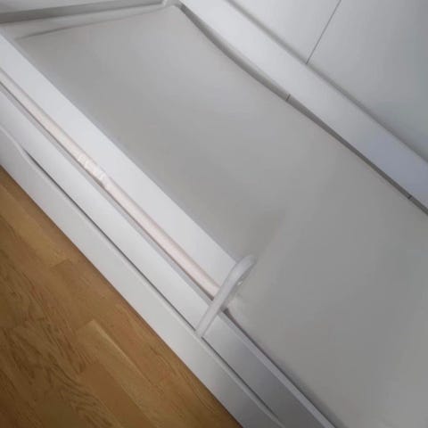 Sengen er i god stand og de viste klistermærker er fjernet. Vi har selv bygget sengen 45cm højere. Kan let laves lav igen, men så er der ikke plads til skrivebordet (medmindre man har meget korte ben😉) meget let at vedligeholde/ændre/male/renovere