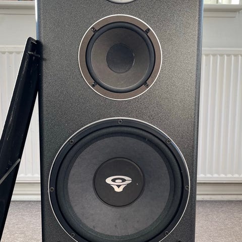sæt cerwin Vegahed hi-fi højtaler som spiller rigtig godt og fyldigt har været brugt som baghøjtaler (pris1000)