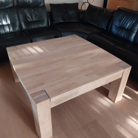 Sofabord i massiv olieret eg med sorte stålben. Meget velholdt, uden brugsspor. Kun et år gammelt. Nypris: 3000 kr.