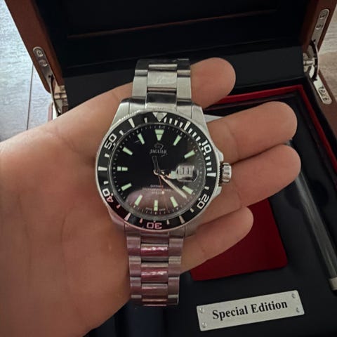 Sort jaguar ur i god stand med nyt batteri