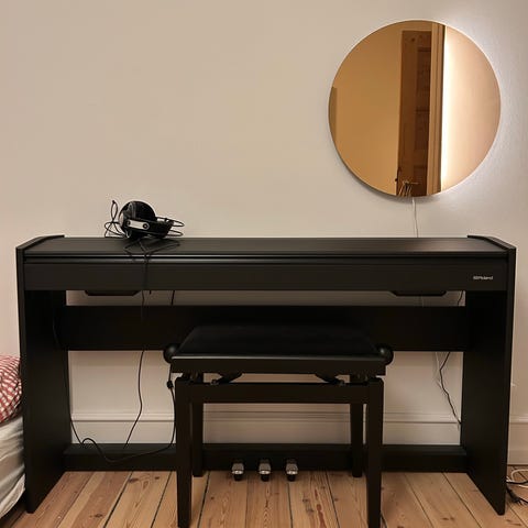 Et helt igennem fantastisk digitalt klaver der føles og lyder som et rigtig klaver, men som kan så meget mere. Jeg sælger det da vi aldrig er kommet i gang med at bruge det. Det er købt som en pakke hos Thomann med følgende tilbehør.