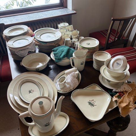 Næsten komplet sæt til frokost eller middag med kaffe dessert.