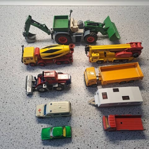 siku vejbanesæt med grå vejplader og trykte vejbaner. Sættet omfatter blandt andet vejkryds, fodgængerfelter, parkerings- eller holdepladsområde, træer, skilte og figurer. Kan bruges som underlag til køretøjer og til leg med trafik og bymiljø.