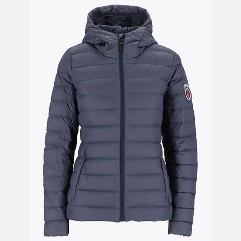 Dunjakke fra Taifun i flot rød farve. Materialet er polyester. Måler 72 cm fra skulder til bund. Ærmelængde 44 cm fra armhule til bund.