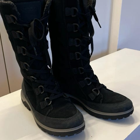 ECCO støvler i størrelse 38. Klassiske ankelstøvler velegnet til hverdagsbrug. Farve og materiale fremgår delvist af billederne, men kan ikke beskrives præcist. Støvlerne har lukket tå og hælkappe samt lav hæl, som giver et stabilt fodfæste. Passer til almindelig brug i overgangssæsoner.
