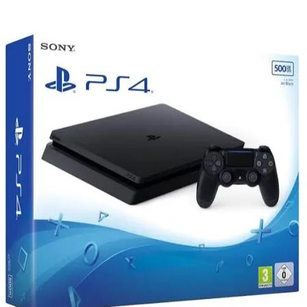 Sony PlayStation 4 Slim konsol med 500 GB harddisk i sort. Konsollen understøtter HDR og leveres med trådløs DualShock 4-controller, strømforsyning, HDMI-kabel og tilhørende dokumentation/manualer. På billederne ses desuden et spilcover, som eventuelt kan indgå efter sælgers oplysninger. Velegnet til afspilning af PlayStation 4-spil, streaming af medier og brug af forskellige apps via PlayStation Network.